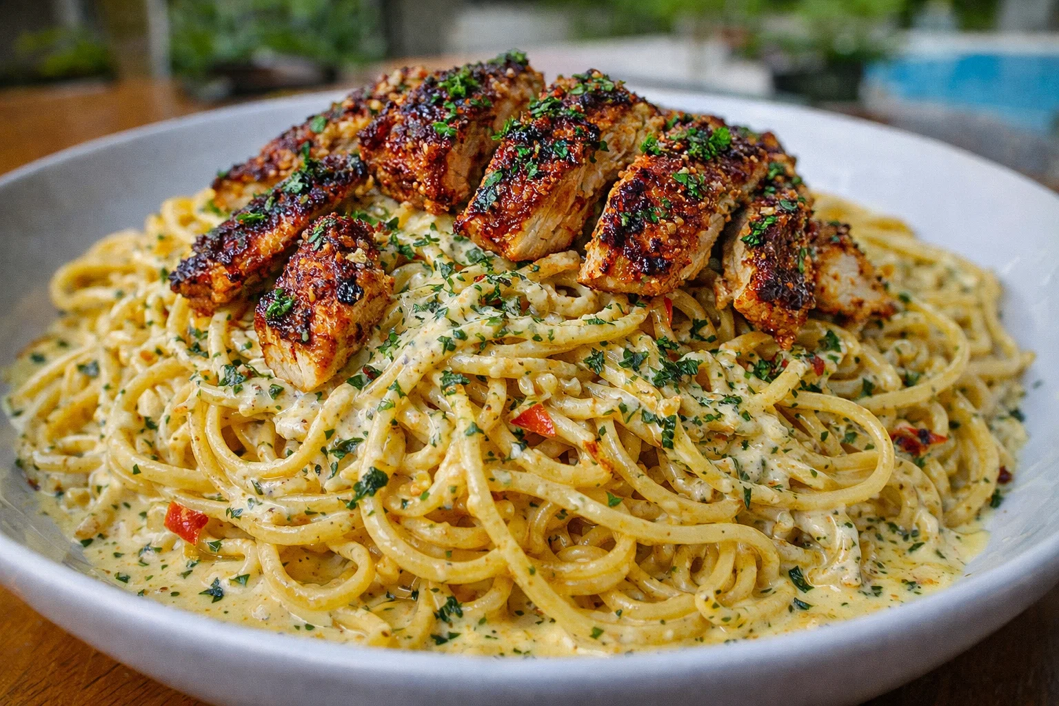 Cajun Chicken and Garlic Parmesan Linguine: A Tropical Delight