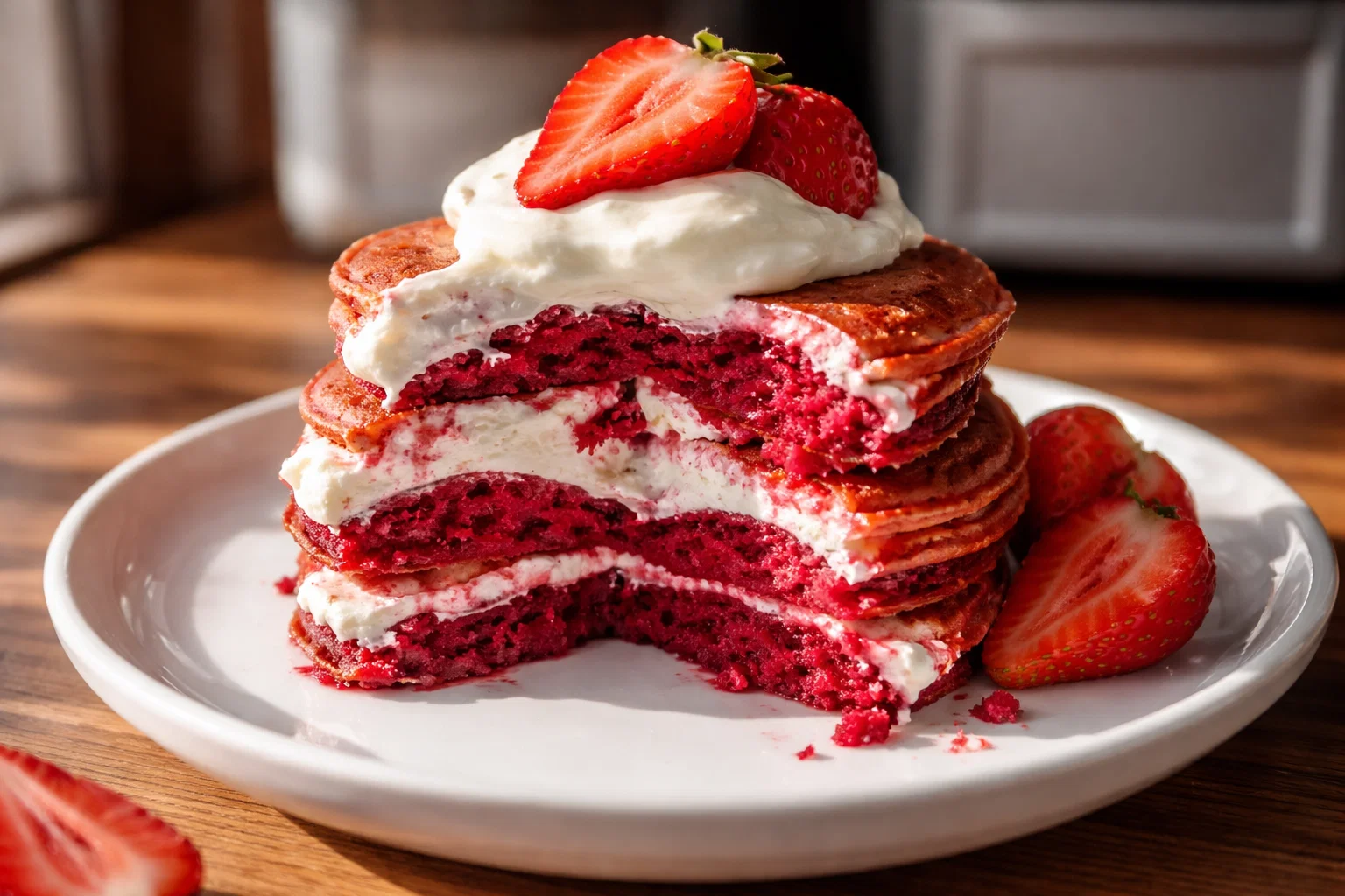 Cozy Strawberries Cream Beet Pancakes: A Tropical Delight