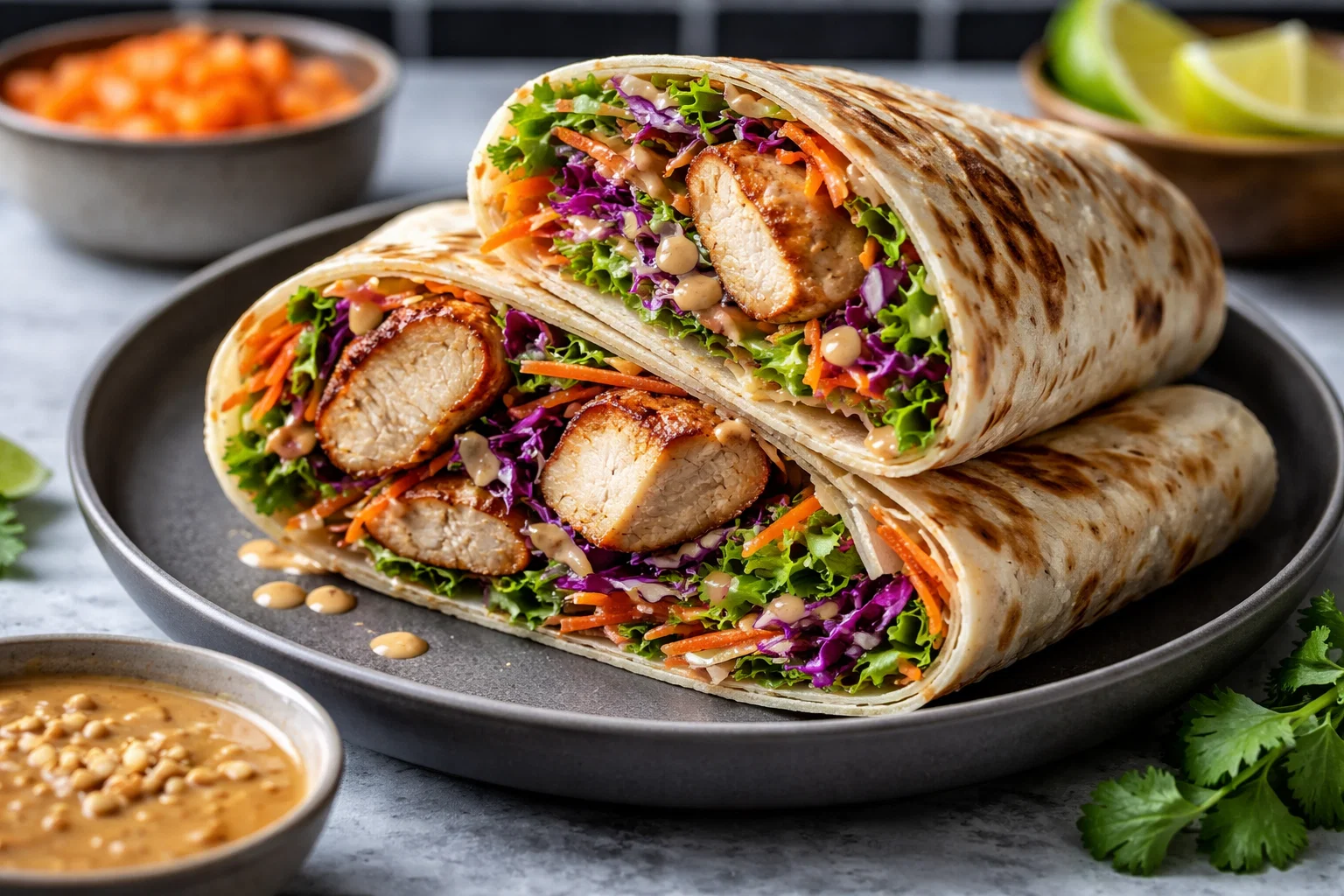 Low-Calorie: Use low-sodium soy sauce and skip the honey for a lighter peanut sauce. Consider adding more vegetables like zucchini or cucumber instead of tortillas for a fresh, low-carb wrap.